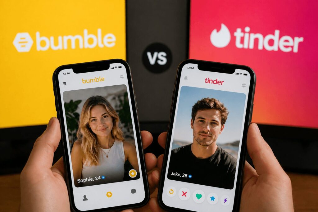 Para los hombres que vuelven a tener citas, Bumble puede resultar más tranquilo. Tinder puede ser más dinámico. La elección correcta depende de si prefieres tener el control mediante filtros o la inmediatez mediante la cantidad de perfiles.